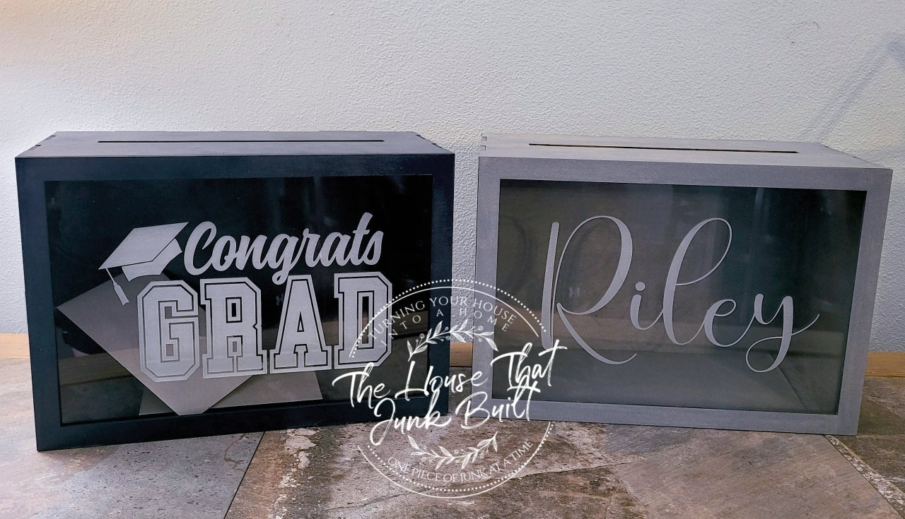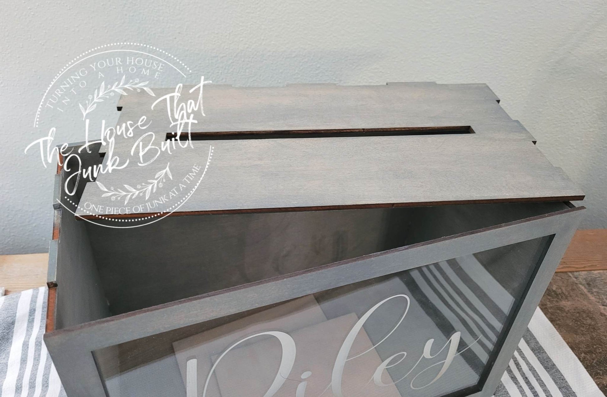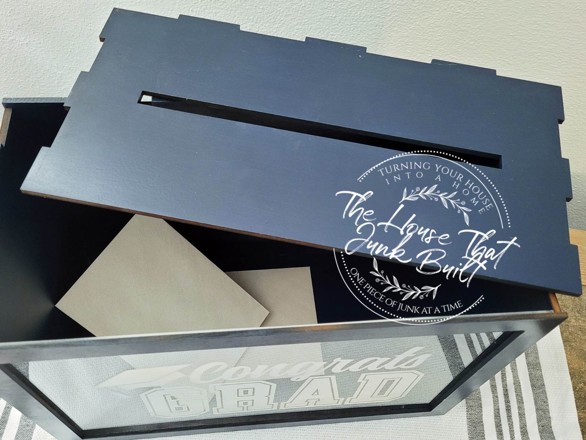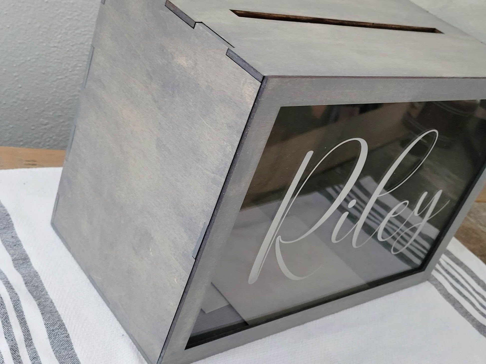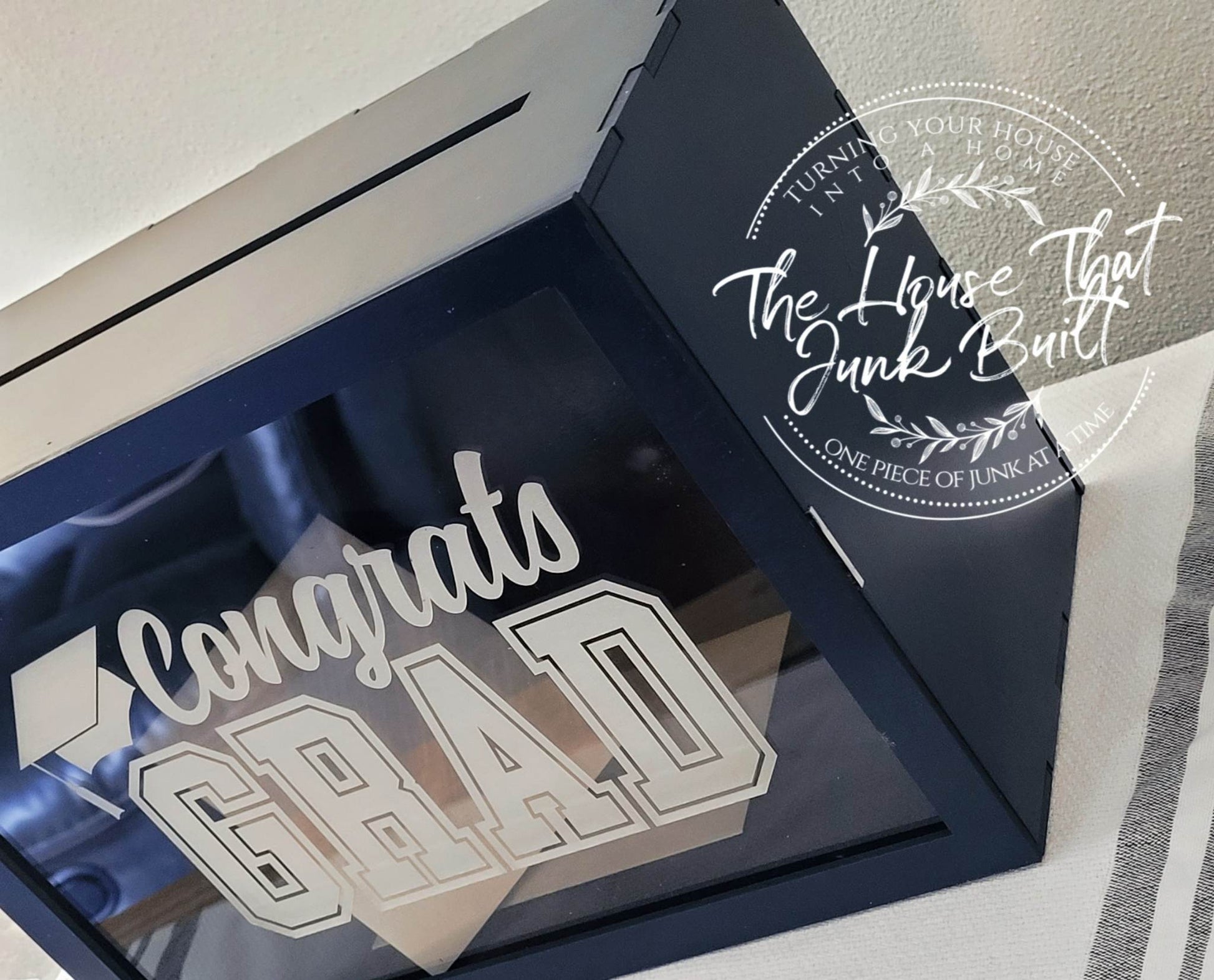These beautiful card boxes were a labor of love to design!  I wanted a box with a removable lid and a nice, flat front with no seams.  Voila, I did it!  Choose from Congrats or a name.  Colors are customizable too.  So many uses after graduation!