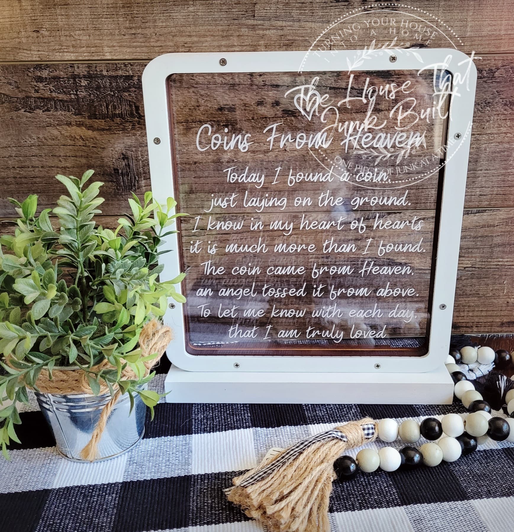 A special place to keep all those little reminders you find. Comes ready to hang on your wall with keyhole hangers on the back or you can choose the standing option. Made with wood and acrylic.
