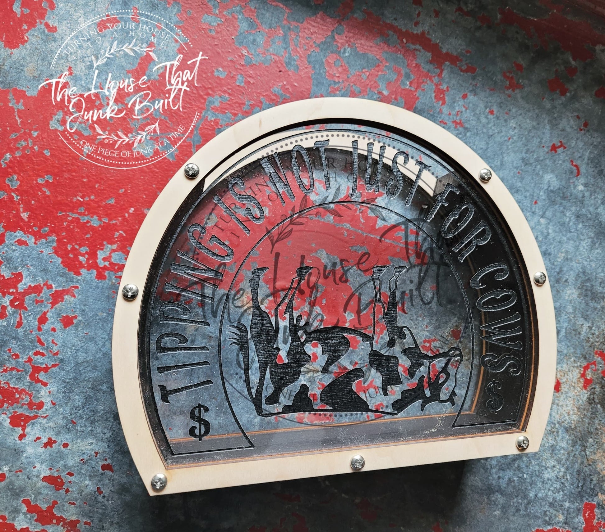 Embrace the country spirit and a touch of humor with our tip jar - a unique and entertaining addition to your service area or home decor. Just remember, tipping isn't just for cows; it's for appreciating the hard work of those who serve us daily.