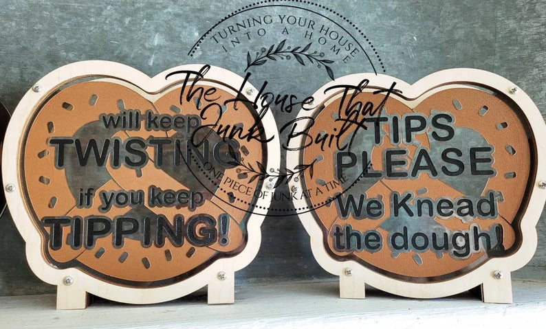 Our Wood Acrylic Tip Jars in two variations are more than just receptacles for tips; they are a conversation starter and a source of amusement. They capture the spirit of your pretzel establishment while encouraging generosity from your customers. Treat your patrons to a unique tipping experience and remind them that their tips are as essential as the salt on your delicious pretzels. These tip jars are perfect for pretzel shops, bakeries, cafes, or any food establishment that serves up this beloved snack. They not only serve a practical purpose but also add a touch of whimsy to your decor.